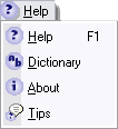 To open the differnt windows it's enought to click in the corresponding item, or in ither words, if you click in the Sun item the Sun window should open, etc. This menu also give you acess to the help files and the Tips window (in the Help submenu).