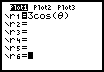 b) As imagens seguintes mostram a utilização de uma calculadora gráfica para traçar o gráfico de uma curva definida em coordendas polares por