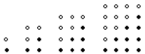 6. Este gera-se também quando o número natural que se estende pela unidade é exposto em linha, empilhando não mais os seguintes sobtre os seguintes, como foi mostrado, mas todos aqueles que são distantes de um uns dos outros, quer dizer os ímpares ; porque o primeiro é 1, primeiro tetrágono em potência, o segundo 1 e 3, primeiro tetrágono em acto, o terceiro 1,3,5, segundo tetrágono em acto, o quarto 1,3,5 e 7, terceiro tetrágono em acto, e o seguinte nasce do empilhamento de 9 sobre os precedentes, e aquele que vem depois dele, do de 11, e assim sempre.