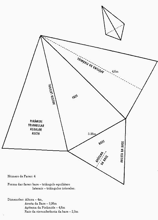triangular regular recta; altura, 4m; base, triângulo equilátero